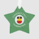 Um ornamento em forma de estrela para decoração de Natal com um anjo vestido na bandeira da Alemanha. O anjo de Natal alemão encontra-se dentro um círculo branco de quadrados rabugentos com um fundo de quadrados verdes. Adicione seu próprio texto, se desejar. Personalize com um nome e personalize com o ano.