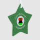 A bandeira vermelha, preta e verde da América Africana é vestida por este anjo para decoração de Natal. Ela voa num círculo branco de quadrados rabugentos cercados por um fundo de quadrados verdes. Acima do círculo, está escrito CHRISTMAS 202? Você pode personalizar adicionando o ano ou substituí-lo pelo texto. Abaixo, há um lugar para um nome, seu ou personalize para um presente de um ornamento estelar.