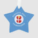 O ornamento em forma de estrela Chanucá para a temporada de festas mostra um anjo vestindo a bandeira vermelha e branca da Dinamarca. Projetado para famílias de múltiplas religiões, o anjo dinamarquês de Chanucá encontra-se no centro de quadrados brancos quadrados, cercados por quadrados brancos azuis. Adicione um nome para personalizar. Personalize adicionando o ano. Ou adicione seu próprio texto.