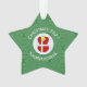 O ornamento em forma de decoração de Natal tem um anjo vestido com a bandeira vermelha e branca da Dinamarca. O anjo de Natal dinamarquês está no centro de um círculo de quadrados brancos quadrados brancos rodeados por um fundo de quadrados verdes. Adicione seu próprio texto ou personalize com um nome e personalize com o ano.