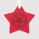 Ornamento Pentagrama de Baphomet. Este Enfeites de natal vermelho, em forma de estrela, com um pentagrama de abrigo é perfeito para preparar a árvore de Natal ou de inverno! Dê como presente ao gótico, fã de horror, satanista, oculista ou bruxa da sua vida como presente de férias. O ornamento é em forma de estrela e vermelho de um lado e verde do outro, com o Pentagrama de Baphomet em preto de cada lado.