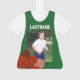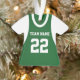 Jérsey desportivo de basquete verde e branco com fotografia personalizada, nome do time e número.