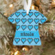 Adoráveis corações azuis sobre vestido azul bebê no Enfeites de natal para a primeira árvore de Natal do bebê. Personalize com o nome da menina.