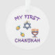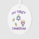 Comemore o primeiro Chanukah do bebê com menorah personalizado de Hanukkah, dreidels e a estrela judaica com adorável "meu primeiro Chanukah".
