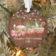 Baby First Christmas Ornament inclui Watercolor Gingerbird Train com doces, biscoitos e pinheiros. Luzes de Corda. Impressão de madeira rustica.
