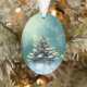 Ornamento Bela Árvore de Natal com Neve e Luzes Douradas