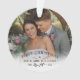 Ornamento fotográfico comemorando seu primeiro Natal como Sr. & Sra. personalizado com foto, sobrenome e o ano com um bonito ramo de condecoração. Primeiro ornamento de fotos de Natal personalizado com fotos de casamento. Primeiro Natal como um ornamento de fotos casado com um bonito galho de maletas.