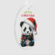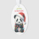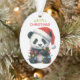 Este é um Enfeites de natal bonito para pais ou avós darem a uma criança, mas pode ser facilmente personalizado como presente para qualquer um. A frente do ornamento tem uma imagem de um adorável Urso de Panda vestindo um chapéu de Papai Noel. Ele está embrulhado numa série de luzes coloridas de Feriado. O texto verde e vermelho diz "MERRY CHRISTMAS". A parte de trás do ornamento tem seu texto personalizado que é separado por uma pequena cana doce e buquê holly. Mude o texto facilmente para o que quiser!