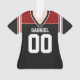 Personalize este ornamento de camisa preto, vermelho e branco para o seu fã de futebol favorito!