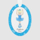 Este adorável ornamento de feriado mostra uma bailarina com cabelo louro em um tutu azul dançando em um quadro branco em um fundo azul e branco de floco de neve. Traços inversos atrás de bailarina que dão a ilusão de sua dança quando você vira o ornamento para frente e para trás. Adicione o nome e o ano do seu filho para personalizar. Faz um presente excelente para a bailarina na sua vida.