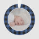 Photo ornament design for the holidays features a favorite image of your child with a farmhouse style BLUE and black buffalo check plaid patterned background. Add your baby's name and year using the template. Perfect as keepsake for newly grandparents or parents
