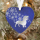Este ornamento bonito de Férias fará um maravilhoso presente de guardas para qualquer um que ama um dachshund! Ele apresenta uma imagem prateada de dachshund em frente a um spray de flocos de neve ornamentado prateada. A imagem é colocada sobre um fundo azul profundo gradiente. A parte de trás do ornamento tem o mesmo fundo azul e flocos de neve, e outro campo de texto para você personalizar. Linda!