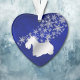 Este ornamento bonito de Férias fará um maravilhoso presente de guardas para qualquer um que ama um Terrier escocês! Apresenta uma silhueta prateada com uma imagem de cão escocês diante de um spray de flocos de neve ornamentado prateada. A imagem é colocada sobre um fundo azul profundo gradiente. A parte de trás do ornamento tem o mesmo fundo azul e flocos de neve, e um campo de texto para você personalizar. Linda!