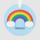 Belo arco-íris com nuvens azuis claras por baixo. Enfeites de natal LGBT personalizável e bonito.