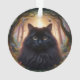 Ornamento Bonito gato preto fluffy com olhos Dourados