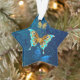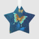 Ouro voador, borboleta de joias em fundo textural azul. Design com borboletas.