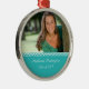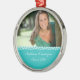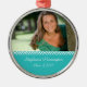 Este ornamento redondo superior da foto da graduação tem uma beira à moda do design do ziguezague do azul e do branco de água-marinha entre uma foto customizável na parte superior e seu texto na parte inferior.