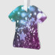 Ornamento bonito e festivo da camisa que caracteriza o brilho do falso de Bokeh & o design roxos & azuis das estrelas