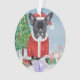Ornamento Bulldog Francês em Neve com Presentes de Natal