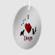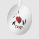 Um design I Heart único com um coração 3d. É decorado com cães e estampas de papoilas em ambos os lados do fazer cardíaco um design divertido para as decorações das árvores de Natal.