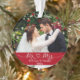 Manuscrito Simples e Moderno de Caligrafia Sr. e Sra. Heart Bride e Ornamento Fotográfico de Casamento com Flocos de Neve de volta. Vermelho.
