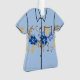 Pista azul. Um impressão de hibisco desenhado com uma mão elegante enquadra a frente desta camisa de aloha. O verso é personalizável com seu nome e saudação. Estas designs vêm em várias cores.