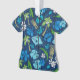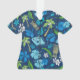 fundo azul marinho com turquesa, aqua, azul-oceano, verde-palma, khaki e natural. Makapuu Beach Hawaiian Tropical Tiki Batik é um impressão de conversa de tikis, palmeiras, peixes tropicais, ukeleles, hibisco e flores de plumeria. Esse design lembra os designs usados na vintagem de camisas aloha nos anos 1940 e anos 50. A textura batik adiciona uma textura única em todo o design.