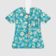 Coroa lacrimogênea. Um impressão de conversa entre tikis, palmeiras, peixes tropicais, ukeleles, hibisco e flores de plumeria lembra os designs usados nas camisas de aloha da vintage nos anos 40 e anos 50. A textura batik adiciona uma textura única em todo o design e vem em várias cores.