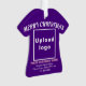 Feliz Natal! Encaminhamento acrílico com textos de saudação de Feliz Natal, nome de sua empresa ou empresa, logotipo, endereço e número de telefone. Designs são textos brancos e cor-de-rosa sobre fundo roxo e em forma de t-shirt. Ornamento para decorar a árvore de Natal em sua loja, compro ou escritório. Ornamento para receber visualmente seus clientes nesta temporada de feriados e anunciar sua empresa ou promover seu nome de marca. Personalize-o e use-o para criar reconhecimento de nome de marca. Verifique a aparência após carregar o logotipo e digitar textos. Se a aparência lhe agrada, você pode colocar seu pedido agora. Se você precisar redimensionar e mover o logotipo e os textos para o ajustado neste ornamento, mude a ferramenta design. Você também pode fazer outras alterações de acordo com sua preferência na ferramenta design, como alterar a cor do ornamento, a cor da fonte e o estilo da fonte. Feliz Natal! Desejo mais vendas para você neste feriado.