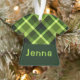 Uma t-shirt monogramada em forma de acrílico, enfeite da árvore de Natal, apresentando uma bela design de xadrez diagonal de padrão de em verde de ervilha. Crie o presente personalizado perfeito clicando no botão "personalizado" para adicionar um nome ou mensagem personalizada no campo modelo fornecido. Selecione o link "clique para personalizar mais" para alterar a fonte, o tamanho do texto e muito mais.