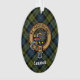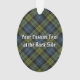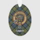 Crachá da crista Campbell rodeado por uma correia e fivela sobre fundo tartano. Texto personalizado de ambos os lados.