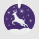 Ornamento do Círculo de Natal. Reindeer de Natal sobre o fundo azul do céu noturno com as estrelas. Texto personalizado no verso. Clássico, moderno e fofo ao mesmo tempo. Perfeito para todas as idades e gêneros. Ajustados em muitos estilos de decoração de Natal.