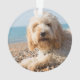 O Natal não está completo sem um ornamento na árvore para o cachorro da família! Adicione sua foto e seu nome a esse cachorro Papai noel de Cockapoo marrom que cria o templo ornamento de dois lados.