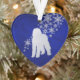 Este ornamento bonito de Férias fará um maravilhoso presente de guardas para qualquer um que ama um cão Labradoodle. Apresenta uma silhueta prateada com a imagem de Labradoodle em frente a um spray de flocos de neve ornamentado prateada. A imagem é colocada sobre um fundo azul profundo gradiente. A parte de trás do ornamento tem o mesmo fundo azul e flocos de neve, e um campo de texto para você personalizar. Linda!