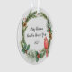 Este belo Enfeites de natal tem uma simples coroa de pinheiros com bagas ocas e alguns pinos. Sentado no galho, é um lindo cardeal vermelho. Todo trabalho de arte é feito em aquarelas. O centro de ornamento lê Feliz Natal de nossa casa para a sua, mas você pode personalizá-lo com o que quiser. O ano também pode ser alterado. O verso do ornamento tem um padrão de canas doces, ornamentos, sinos, arcos, estrelas, verde e cones de pínus. Um adorável ornamento para dar como presente a um colega de trabalho, amigo, professor ou membro da família.