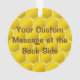Cartoon voador de abelha sorridente sobre fundo de colmeia de abelha sem costura. Texto personalizado de ambos os lados.