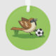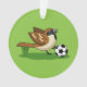Um giro de desenho de kawaii bonito desfrutando de jogar futebol no campo verde. O pássaro está prestes a acertar a bola e marcar um gol.