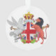 Cartoon Royal Throne Crest com Pegasus, Leão a bandeira do sindicato britânico num escudo e uma coroa Ouro de joias.