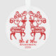 Ornamento Casal Personalizado de Reindeer Nórdico Vermelho