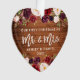 Madeira Rústica, Escrita Bruta Moderna, Watercolor Burgundy Marsala Floral, Nosso Primeiro Natal como Sr. e Sra. Coração Ornamento de Casamento