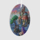 Se você ama as sereias, então esta pintura é para você. O Castelo de Sereia pintado por Traci Van Wagoner apresenta uma sereia com cabelo roxo na frente e uma sereia com cabelo verde se soltando em ilhas rock enquanto outra sereia com natações de cabelo cor-de-rosa no oceano diante de um castelo com um céu roxo, laranja e amarelo por trás. Esta bela e caprichosa arte da fantasia faz um presente de excelente e uma decoração espantosa para o seu escritório ou casa.