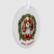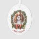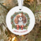 Enfeites de natal bonito com o adorável cachorrinho Blenheim Cavalier King Charles Spaniel em uma coroa de Natal. Personalize facilmente o texto ou deixe-o vazio - Kate Eden Art