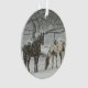 Cena de dois cavalos na neve, imagem do inverno repetida no reverso.
