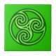 Azulejo num antigo triskele celta/padrão triskelion, ou espiral arcaica tripla, em limão claro e verde escura esmeralda sobre um fundo de verde limão médio