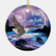 Brilhe sua árvore de natal e personalize este único ornamento de águia careca "Um dos tipos". Ela apresenta uma pintura de uma águia careca lançando-se sobre um rio iluminado em uma tempestade de relâmpago! Pintura de arte original do artista Kerry Miller.