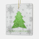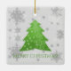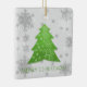 Decorre sua árvore neste feriado com um Enfeites de natal cerâmico verde de árvore de Natal Festivo. Design de ornamento apresenta uma vibrante e festiva árvore de Natal enfeitada com cinzas em queda e flocos de neve brancos com um cartões de natal. Itens adicionais de presentes e feriados disponíveis com este design também.