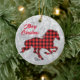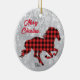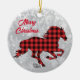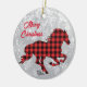 Personalize e clareie sua árvore de Natal com este único "Um dos tipos", Red & Black Xadrez Horse, Ornament cerâmico! Ele apresenta uma Xadrez vermelha e preta, uma silhueta de cavalos galopando em um fundo de Cinza com flocos de neve brancos! Pintura Bela Original Do Artista Kerry Miller.