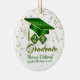 Este ornamento de manutenção apresenta boné verde e dourado e tassel em escudos de diamante com seu ano de graduação, diploma, nome e escola sobre o fundo das estrelas ouros. Faz um presente de excelente nesta temporada de festas. É fácil personalizar com opções personalizadas.