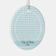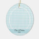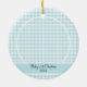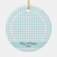 Ornamento Cerâmico de Foto Bebê Gingham Azul Moder