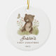 Simplesmente perfeito O primeiro ornamento de Natal do Bebê, com uma cena de um doce urso de aquarela.